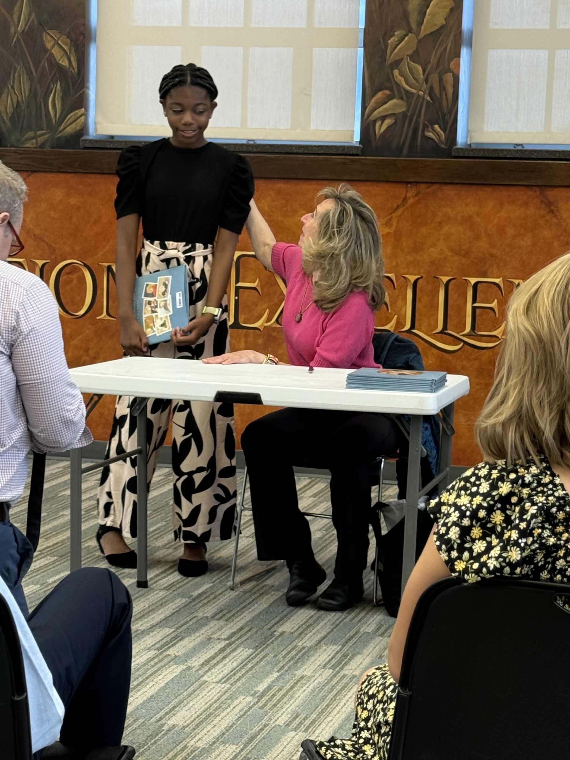 Sy was given a royal welcome in Utah by the Ogden School Foundation – they even recreated Christopher Hogwood and his barn. As part of her visit, Sy met with the winners of this year’s essay contest for 5th and 6th graders: “How to be a Good Creature — Lessons that we can learn from the animals around us.”